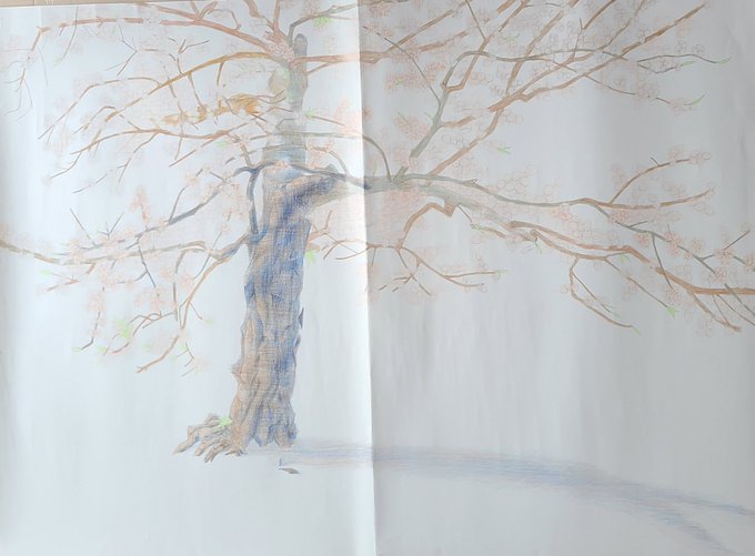 《桜》 色鉛筆 紙 A0 2022年 公園の満開のサクラの写生 #色鉛筆 #原宿