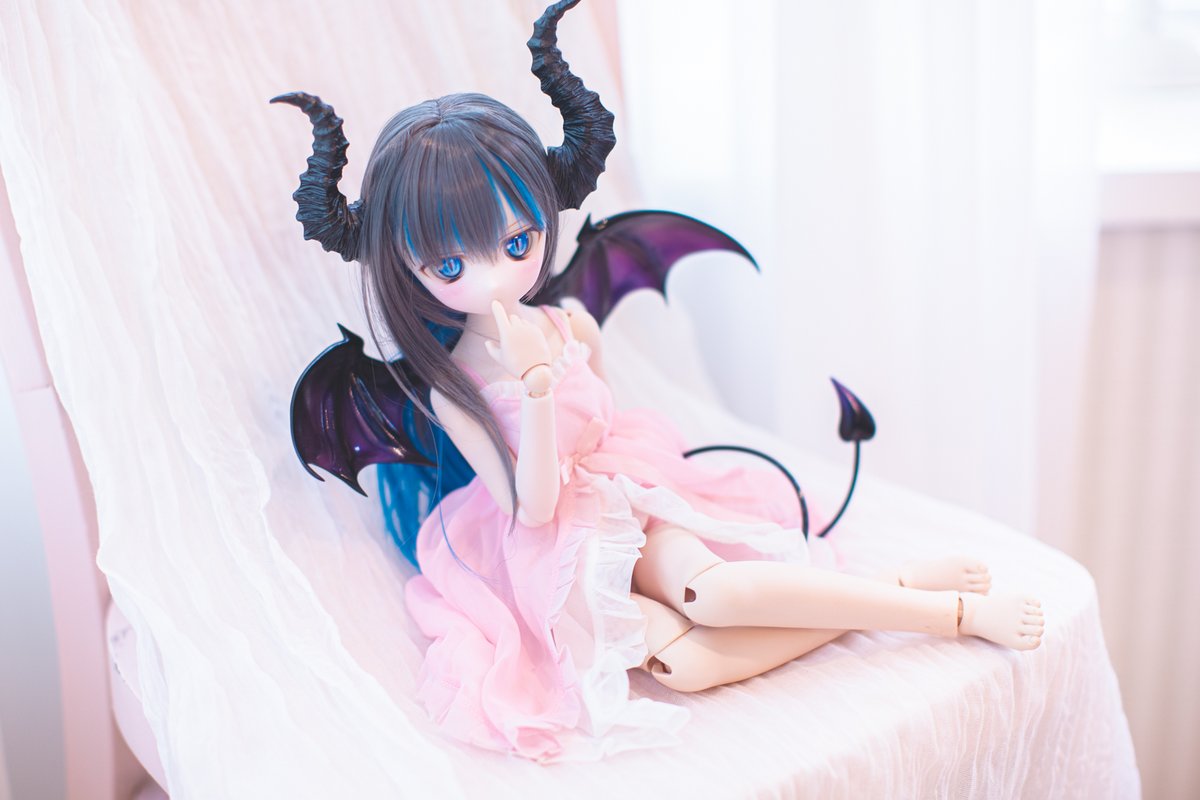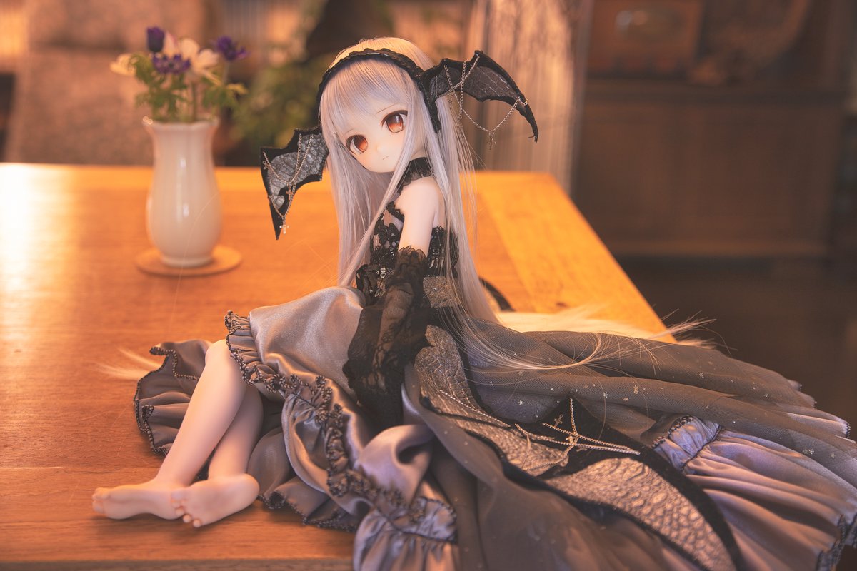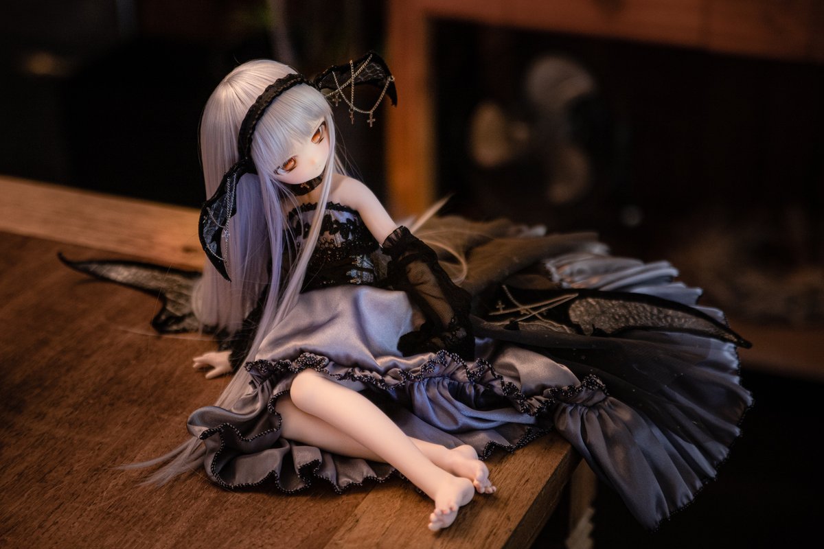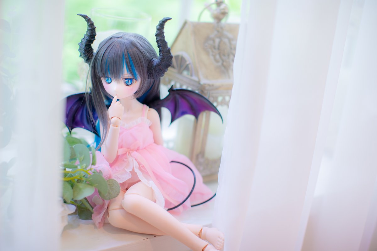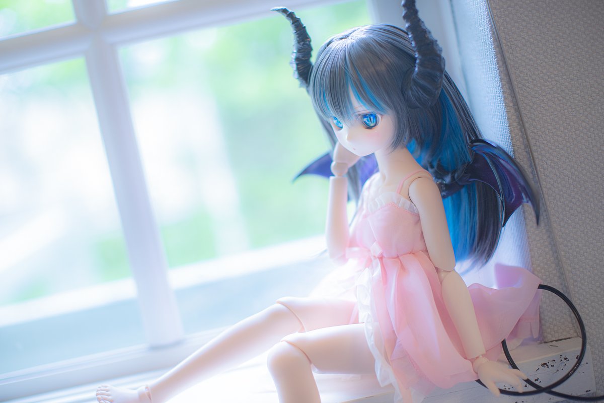 アトリエのお部屋にて。 白基調の部屋なのでベビードール風な衣装が似合いそうと思って 着替えさせて撮ってみたり(*´ω`)