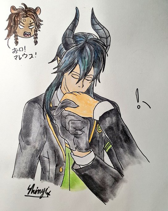 マレウスも! これは #ツイステ で完全に三角関係になっている。 #malleusdraconia #マレウスドラコニア #leonakingscholar #レオナキングスカラー #ツイステッドワンダーランド #ディズニーランド #ヴィランズ #ツイステファンアート #twistedwonderlandfanart