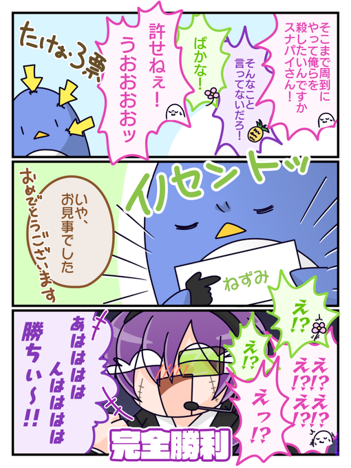#ぺぇいん #スナパイのポンチ絵 #たけぉぇかき スナパイさんの手腕あってこそのさかなさんの作戦を最大限に活かせた大変素晴らしい試合でした👏たけぉさんもナイスファイト……! 終了後のトークで溢れ出る嬉しさや楽しさが伝わってきてこちらも一緒に嬉しくなりました☺次回も期待しています!