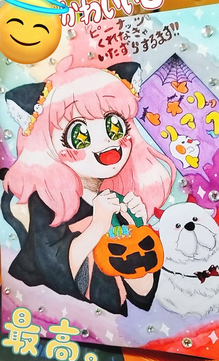 👻HappyHalloween🎃 ペン1発書きの落書きちゃん達を 色塗りして、シールでアレンジ✨ 結構いい感じ( `ω´)グフフ✨ #HappyHalloween #ハロウィンイラスト展示会2022 #トリック・オア・トリート #イラスト #1発書き #ゆきうさのお絵描き