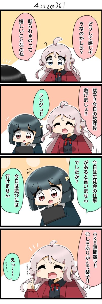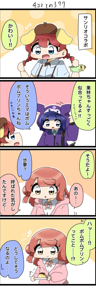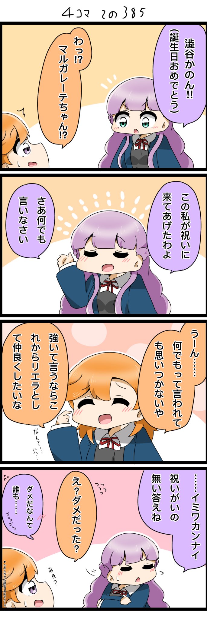 今日の4コマです✨️🎧🎉🎂✨️ かのんちゃん誕生日おめでとー!!! お祝いに来たマルガレーテちゃん🦋 #lovelive #Liella #澁谷かのん生誕祭2023 #澁谷かのん誕生祭2023