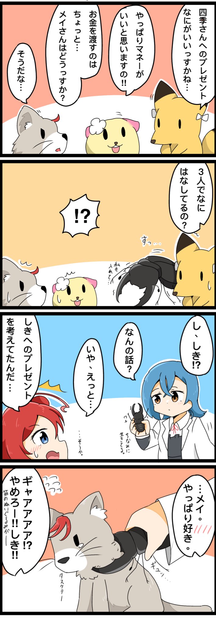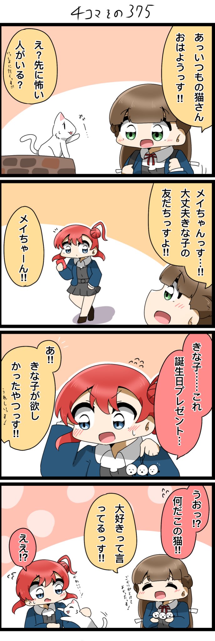 今日の4コマです✨️🎂🦊🎉 きな子ちゃん誕生日おめでとうっす!! ねこちゃんときなメイ。 #lovelive #Liella #桜小路きな子生誕祭2023 #桜小路きな子誕生祭2023