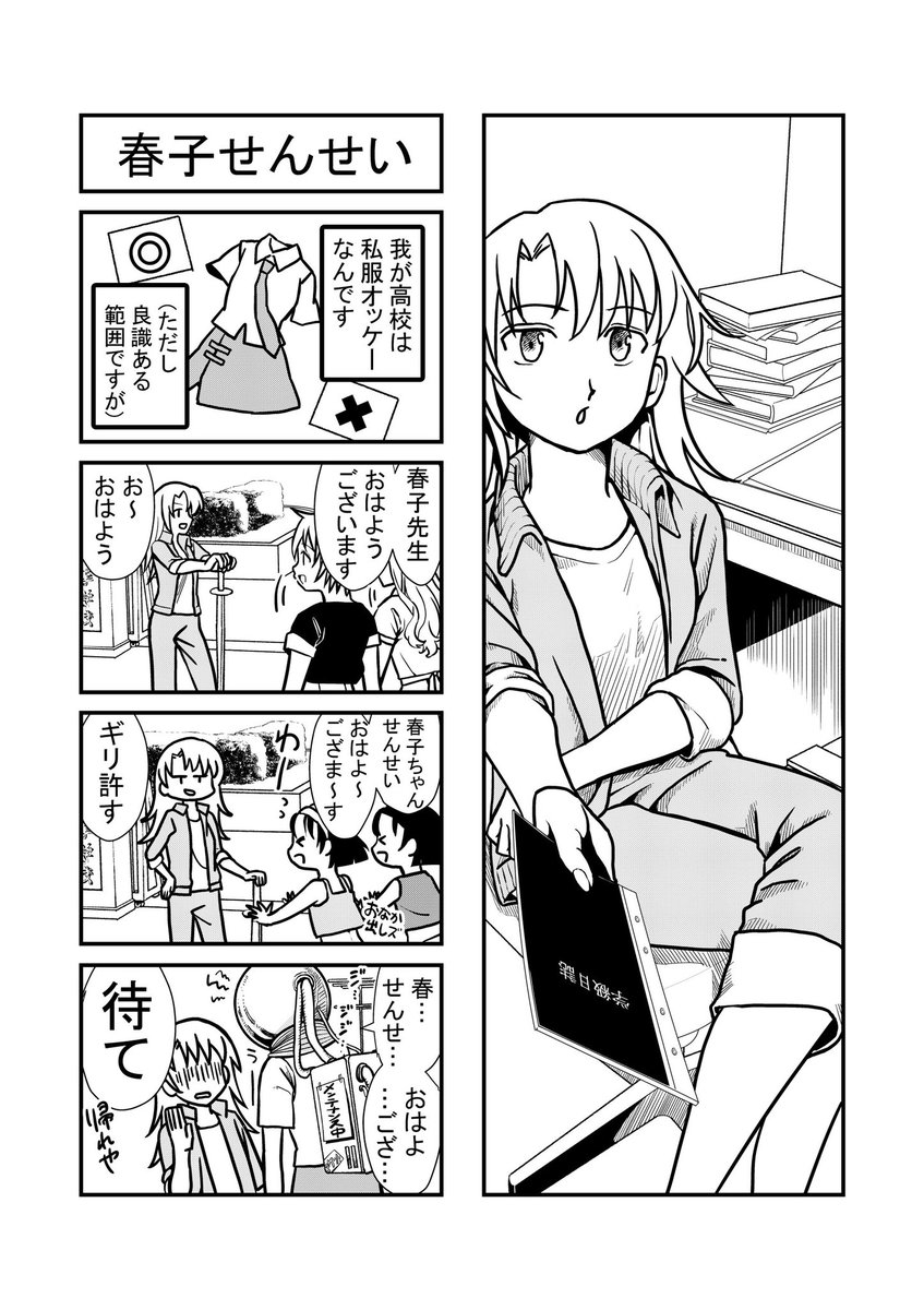 鼻の描き方を延々と悩んでいる私です。第5話目!担任の春子先生です👩🏫 #漫画が読めるハッシュタグ #漫画家志望さんと繋がりたい #創作漫画