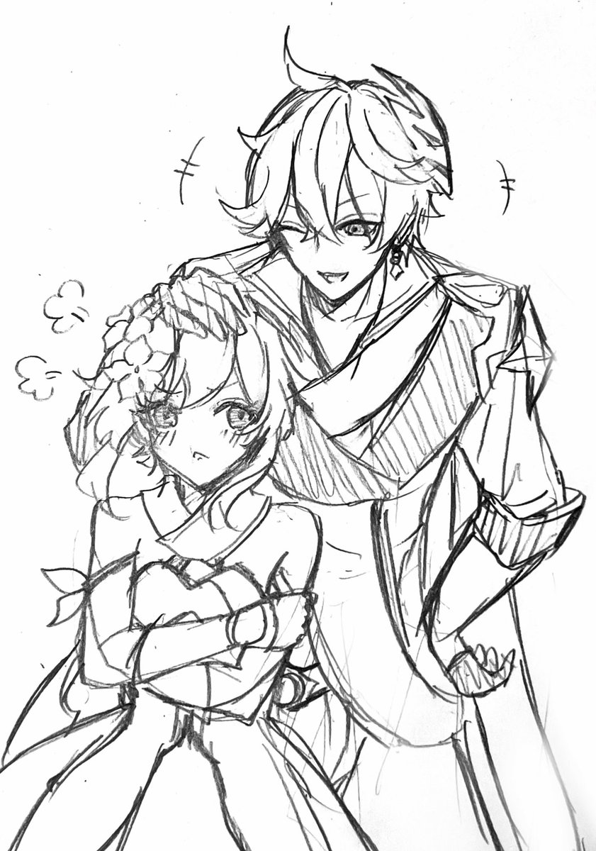 小鍾蛍と魈 #ユウキの1日1枚落書き