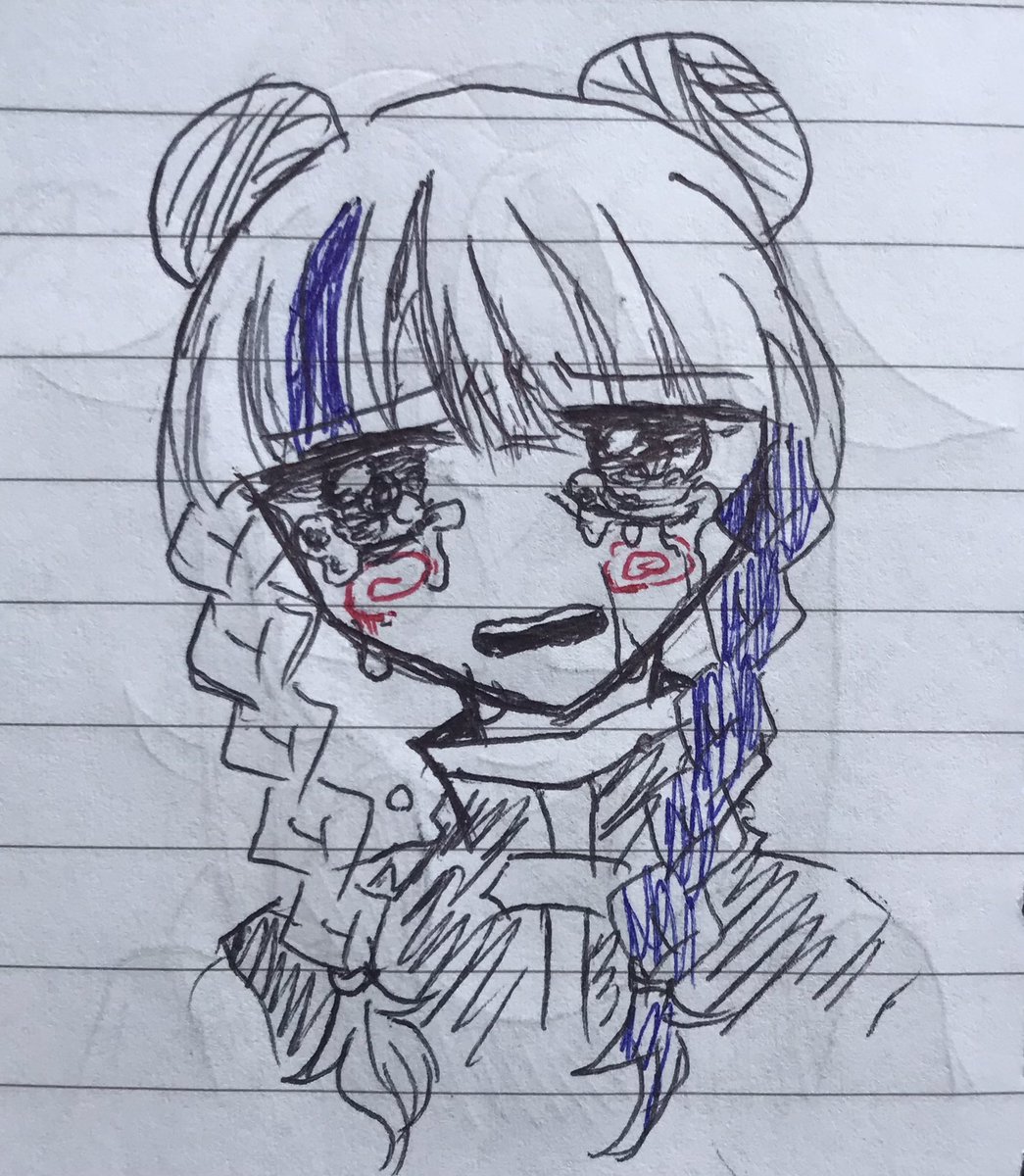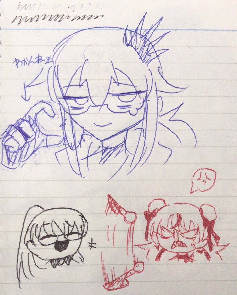 研修で使ってたメモ帳の空いてるページにらくがきしてたものでも載せるか サブ代理と仲が悪いメア鳴