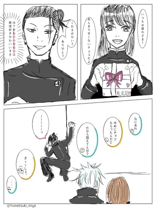 1 4 ⚠️夢(夢主顔アリ)両片想い。 バレンタインネタです。 初漫画なのでいろいろおおめにみてくださると幸いです… #夢術廻戦 #じゅじゅプラス 22/02/14 00:21