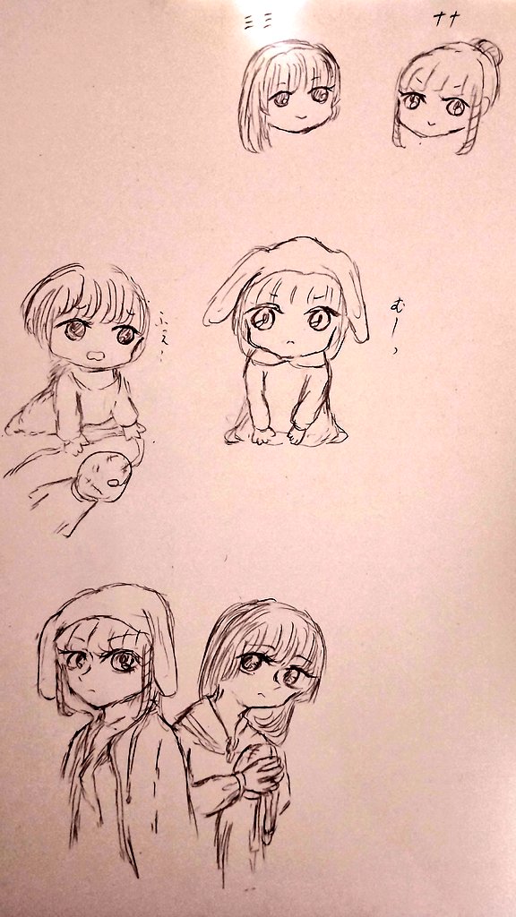 2 6 ミミナナちゃん。ミミちゃんの文字が発光してる😂雑だな… うさみみパーカー着てほしかっただけ カラーイラストのネタだしです! #呪術廻戦ファンアート 22/03/24 23:45