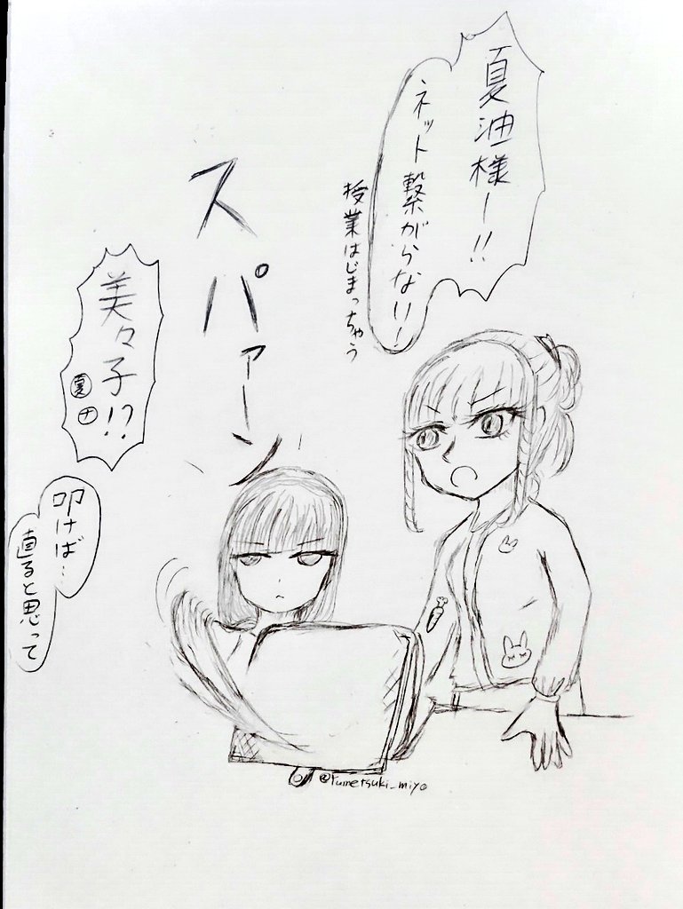 1 3 オ|ン|ラ|イ|ン|授|業をうけるミミナナちゃん。 これってあるあるじゃないですか? 私は繋がらなかったです。 #呪術廻戦ファンアート #ミミナナ 22/04/15 12:34
