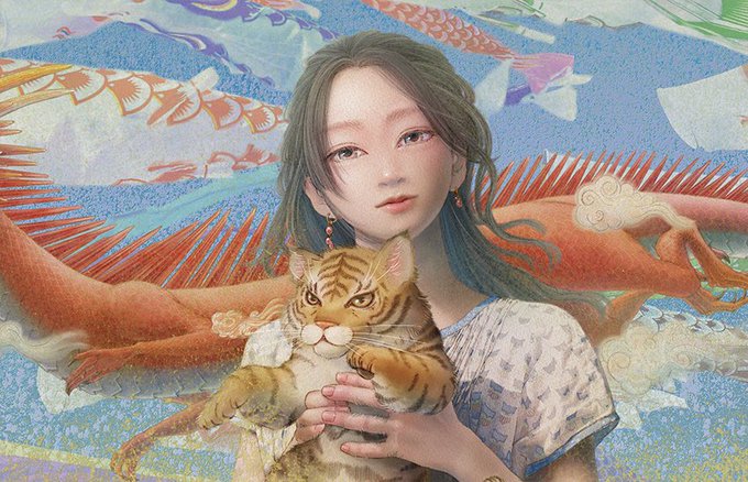 #8月になったのでフォロワーさんに自己紹介しようぜ アナログとデジタルの間に挟まって、厨二病を患っています✨ 8月はシビュラ展の後半パートに凸します🙇♀️よろしくお願いいたします🐉🐯 夏なのに…鯉のぼりて…🎏