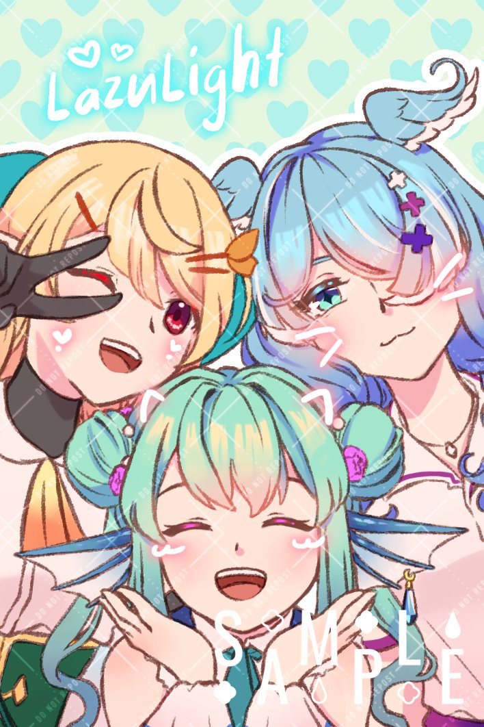 LazuLight photocard 💕 Try some Pomu leaves so you can be pretty and have beautiful legs like them 😌 2 faces of the photocard and of course, I'm gonna draw all of the NijiEN waves. Gonna open a pre-order later for anyone who is interested. #pendorART #Finanart #PomuPaint
