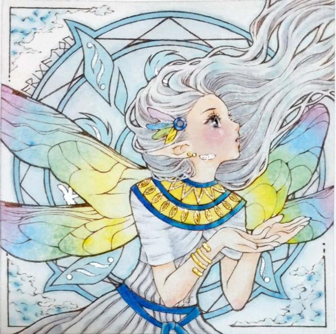 3 12 【風の精】 だいぶ前にインスタでご依頼頂いたものです🖼 シルバーの額に入れてお贈りさせて頂きました📦 パール顔彩で部分的に色付してあるので、日にかざすとキラキラ光ります✨ #アナログイラスト #水彩画 #コピック 23/08/06 06:00
