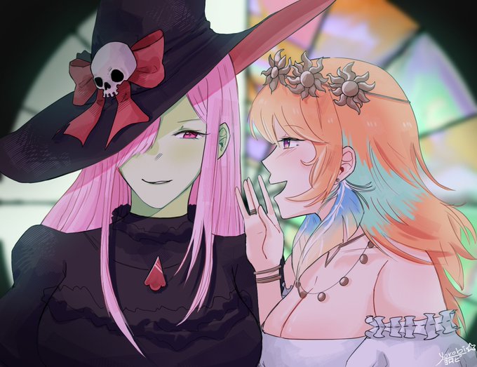 A Wicked Musical AU ♥️🧡 Calli and Kiara as Elphaba and Glinda! I commissioned @YorobiSan for this piece (´ ∀ ` *) #callillust #ArtsOfAshes #TAKAMORI