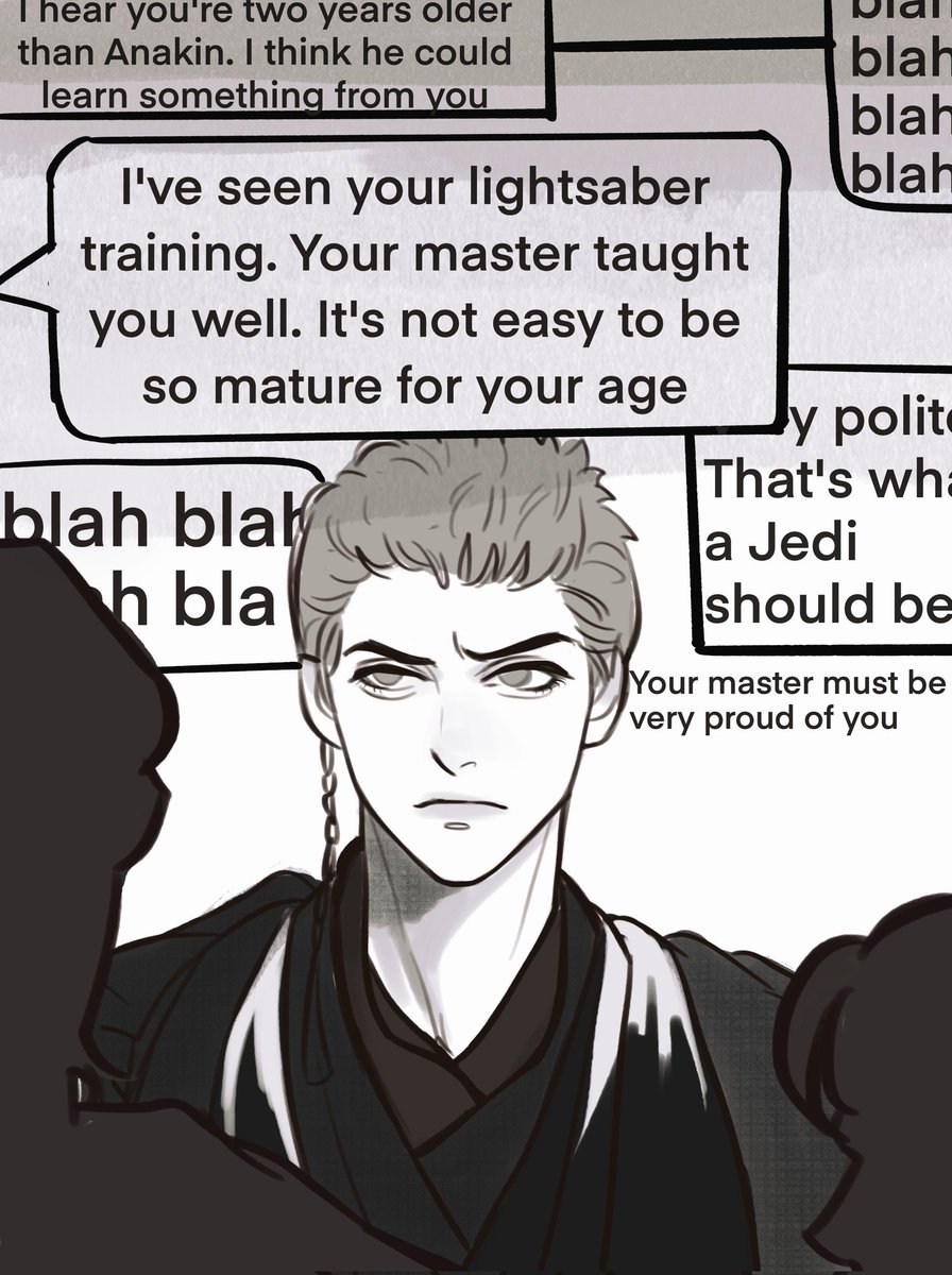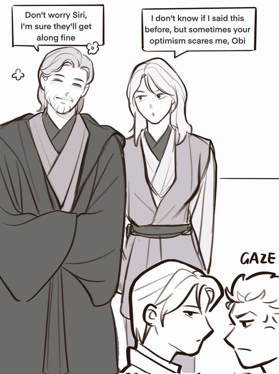107 453 In Jedi Quest, Obi-Wan praises Ferus for his maturity, which makes Ani jealous. (just want to draw the two pairs of master and apprentice) 22/06/16 01:57