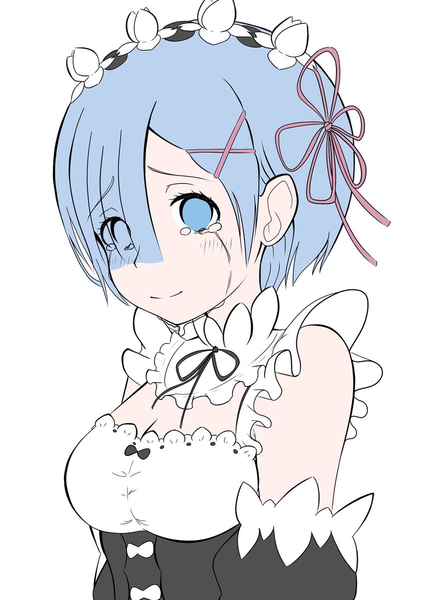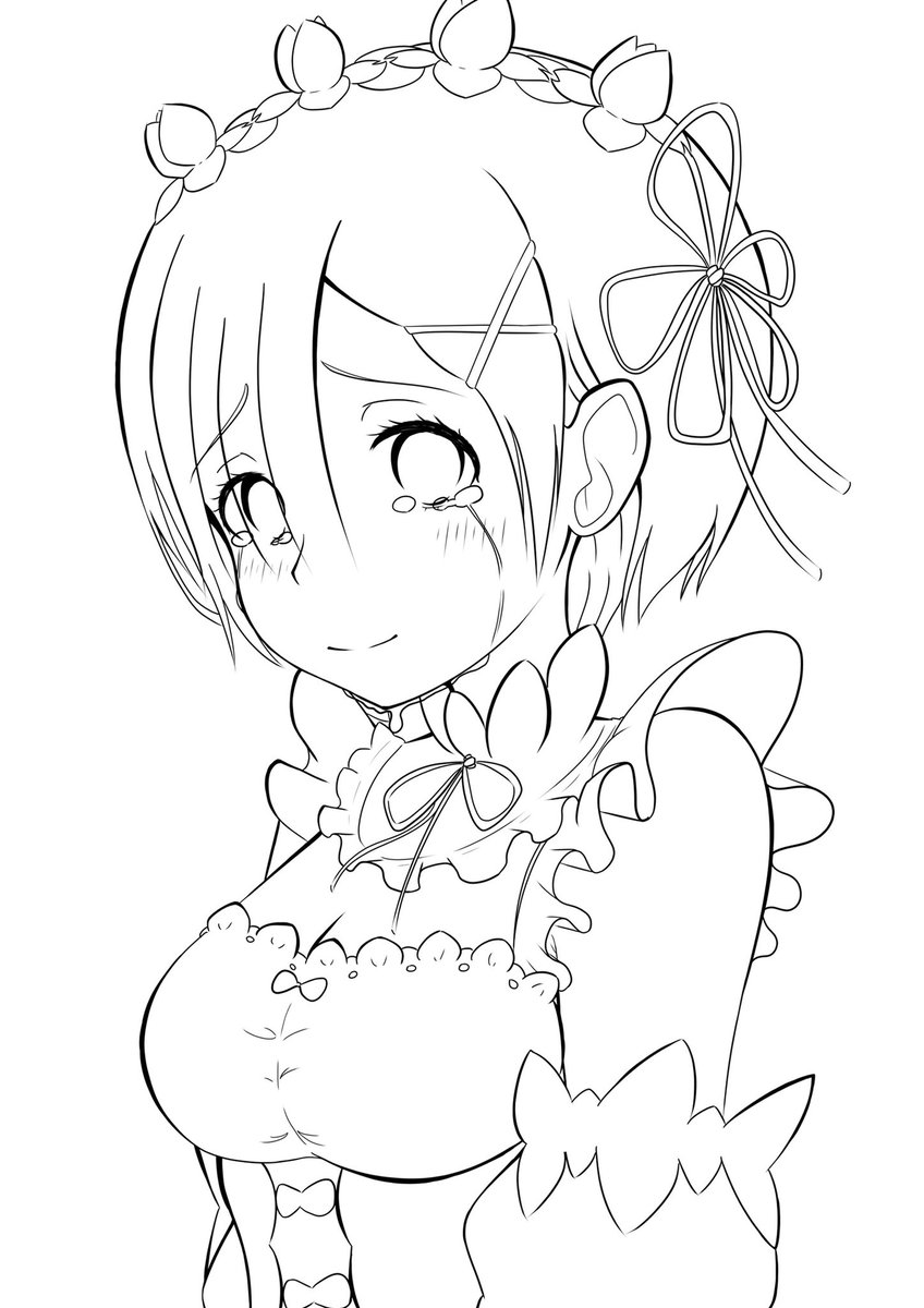 レムりんの線画とベースカラー終わったぞお!! 完成したらまた載せまーす。 因みに一番の推しキャラです☺️ #レム #イラスト #レム推し
