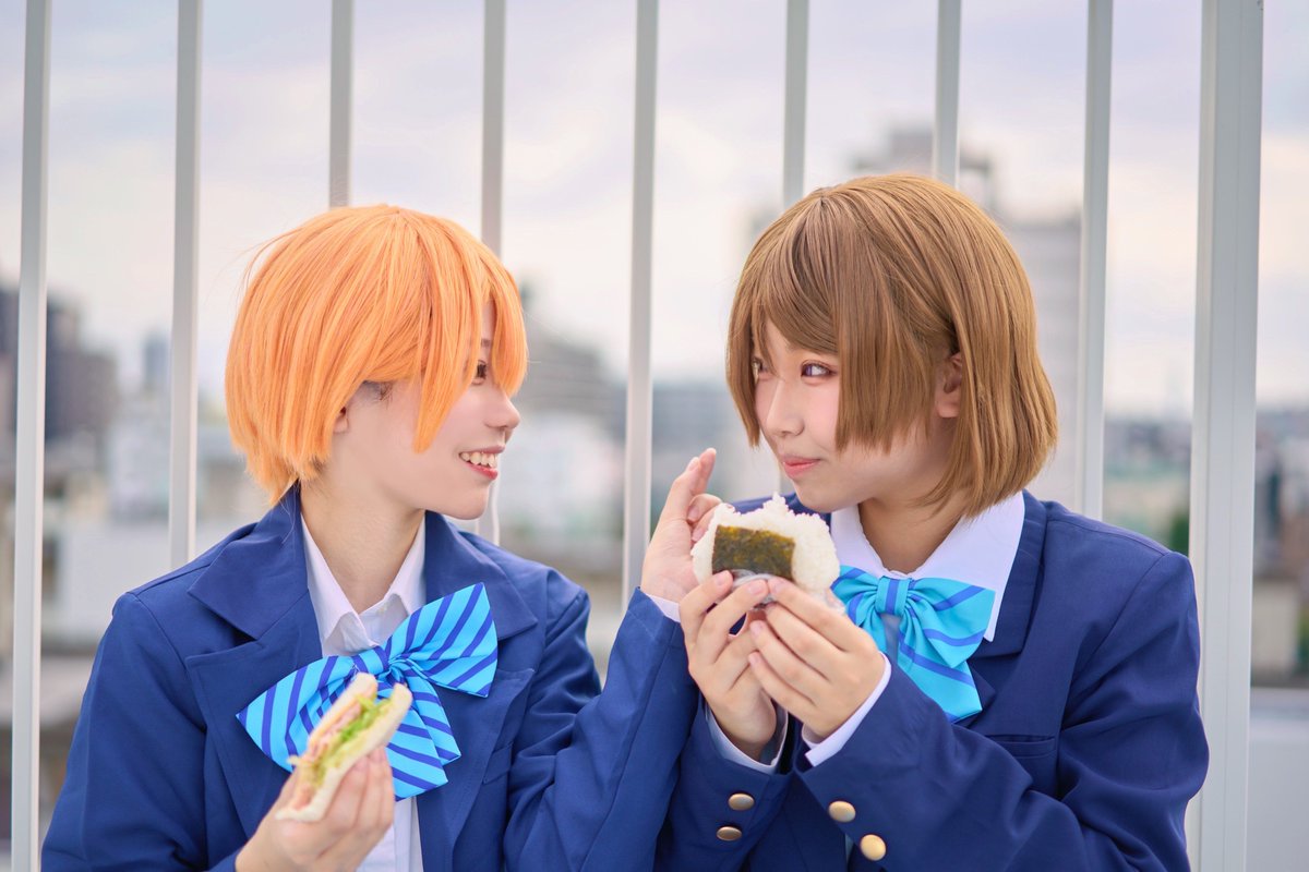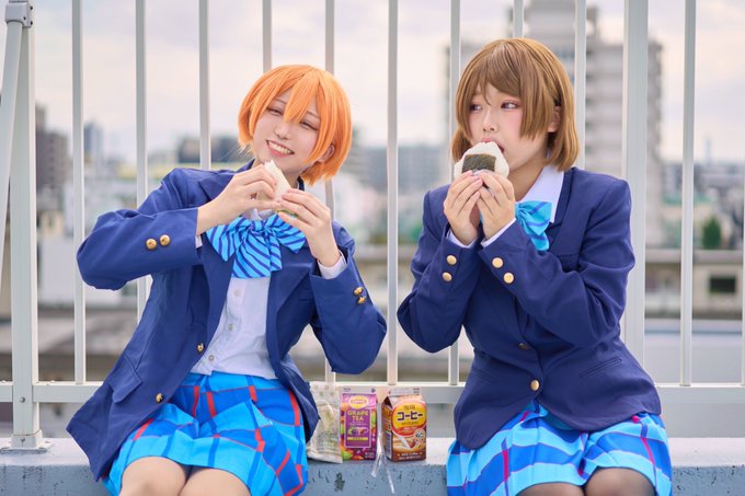 ※Cosplay ラブライブ! 💚小泉花陽🍙 💛星空凛🐱 .˚⊹⁺‧┈┈┈┈┈┈┈┈┈┈┈┈‧⁺ ⊹˚. 「ŧ‹”ŧ‹”...白米ってどうして こんな美味しいのかなぁ....」 「かよちん、頬張りすぎにゃ〜! 口元にご飯ついてるよ!」 .˚⊹⁺‧┈┈┈┈┈┈┈┈┈┈┈┈‧⁺ ⊹˚.