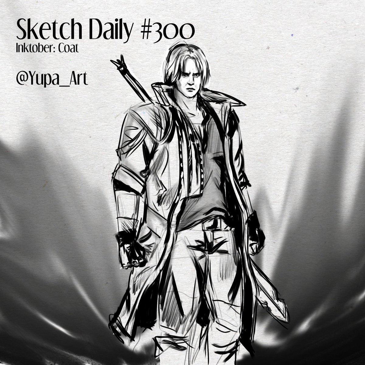 #sketchdaily day 300🎉🎉 ; #Inktober2019 day 27 Coat. Its Dante from Devil May Cry! Really cool guy, i should go and play the games sometime. Also my 300th daily drawing! 🔥Whoop Whoop🔥