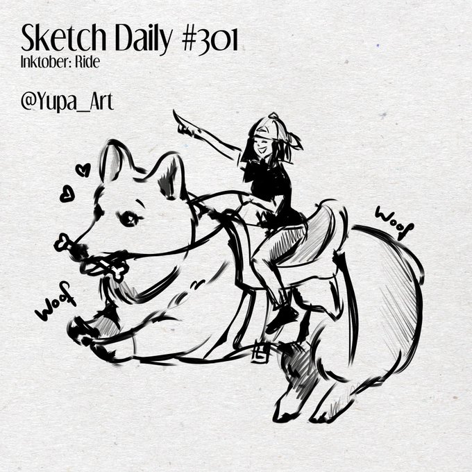 #sketchdaily day 301 ; #Inktober2019 day 28 Ride. Damn i wish i could ride a corgi into battle. That'd be so raaaad Also i'm really tired and doodled this really quick, just as quick as this cute dog, woof🐶