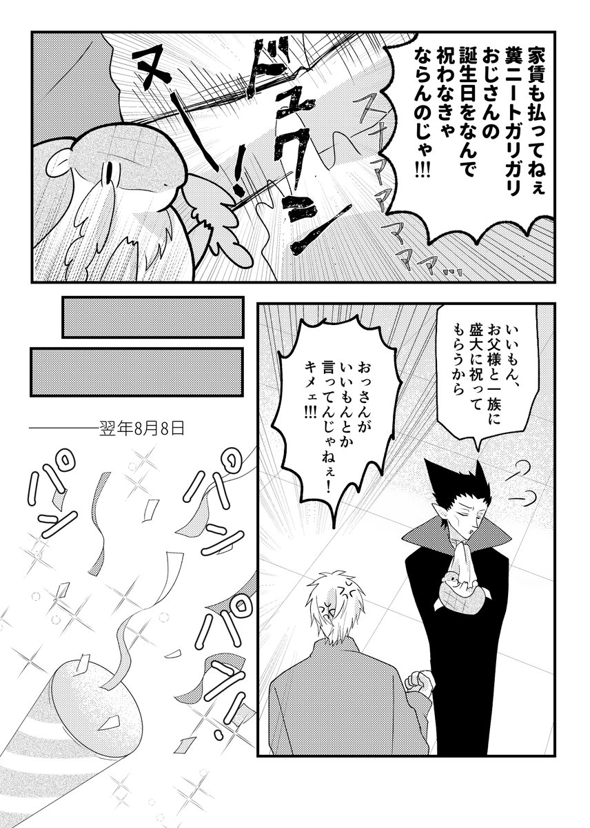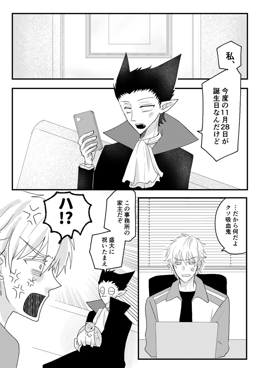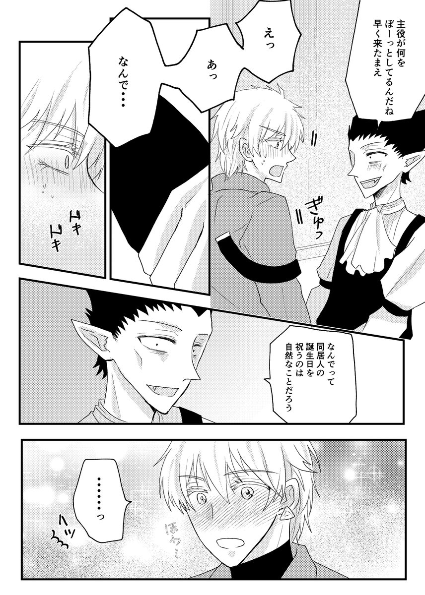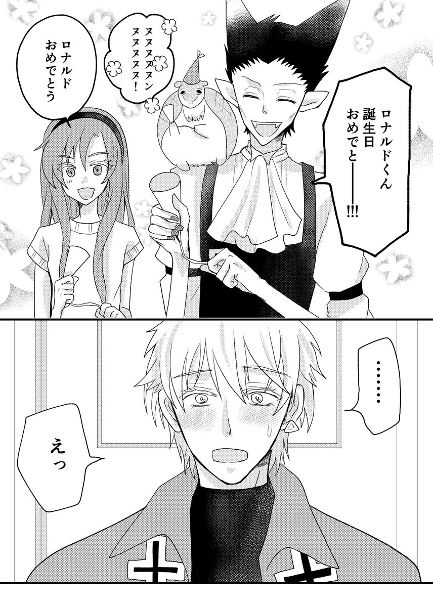 ド誕生日漫画。ロナドラです。 ソファ棺7で展示している漫画になります。全33ページ。 もだもだしている両片思いのおはなしです。嫌われるのが怖いロと種族差・寿命差が怖いド。一歩踏み出せない2人の背中を押すイケ〇。 ポイピクからもまとめて読めますのでどうぞ↓ poipiku.com/137753/7899588… 1/9