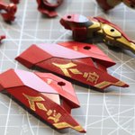 赤の塗装。 写真じゃわかりにくいけれど調色した赤とは別にメタリックを部分的に吹いてみた。 パネル裏なんかもガンメタ塗って情報量を増やしたつもりですが… この足、何かに見えると思ったら…あれだ! アイアンマンだ! #メガミデバイス
