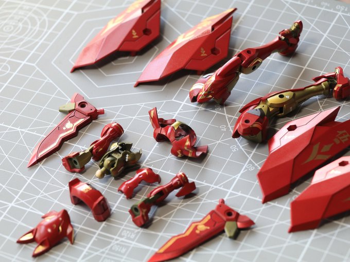 0 6 赤の塗装。 写真じゃわかりにくいけれど調色した赤とは別にメタリックを部分的に吹いてみた。 パネル裏なんかもガンメタ塗って情報量を増やしたつもりですが… この足、何かに見えると思ったら…あれだ! アイアンマンだ! #メガミデバイス 22/06/13 22:44