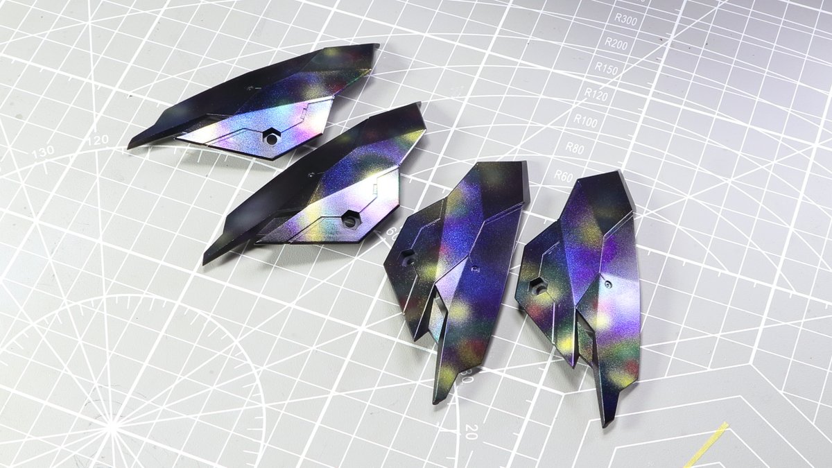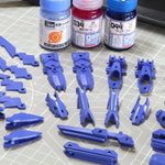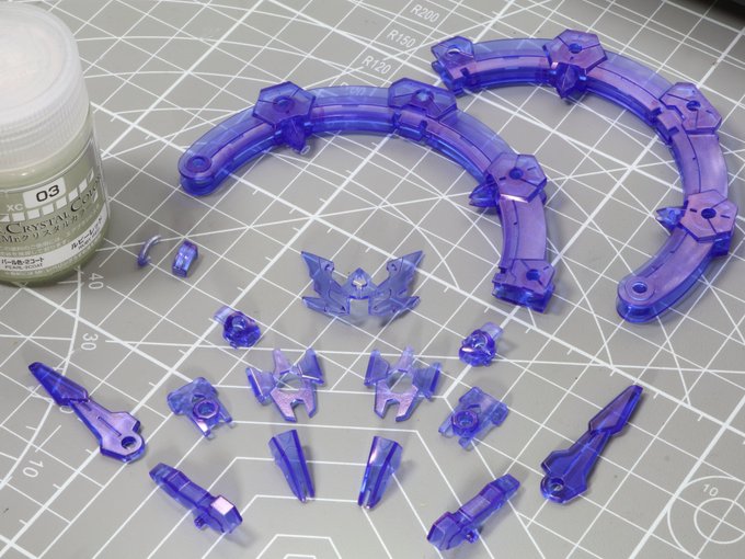 1 5 スサノオの…クリアパーツ② 濃いブルー部分にはクリスタルカラーのルビーレッドを。 光のあたり方で赤みが出て綺麗な紫のような発色になります。 今回、赤み赤み言うとりますけど全体的にはいい感じ(笑) 完成まであと少し! #メガミデバイス 23/02/21 00:12