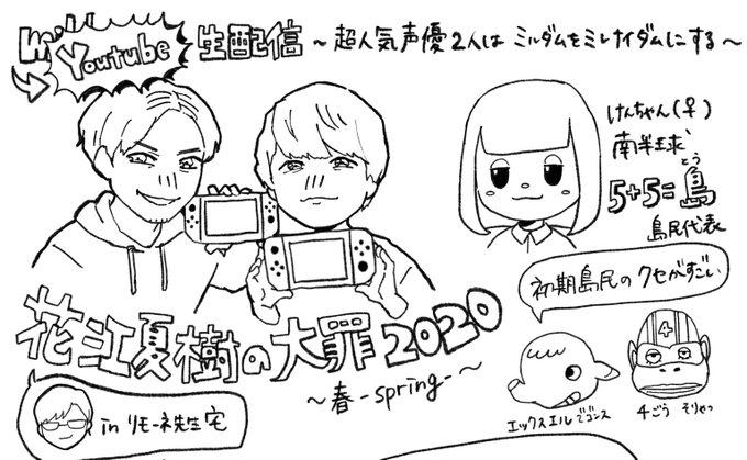 167 1024 #花江夏樹の大罪 #花江夏樹 #小野賢章 #あつまれどうぶつの森 初!!生配信!伝説になりましたね…!😂🎉本当にお疲れ様でした!画像は個人的に印象に残ったシーンです🌼 20/04/04 00:11