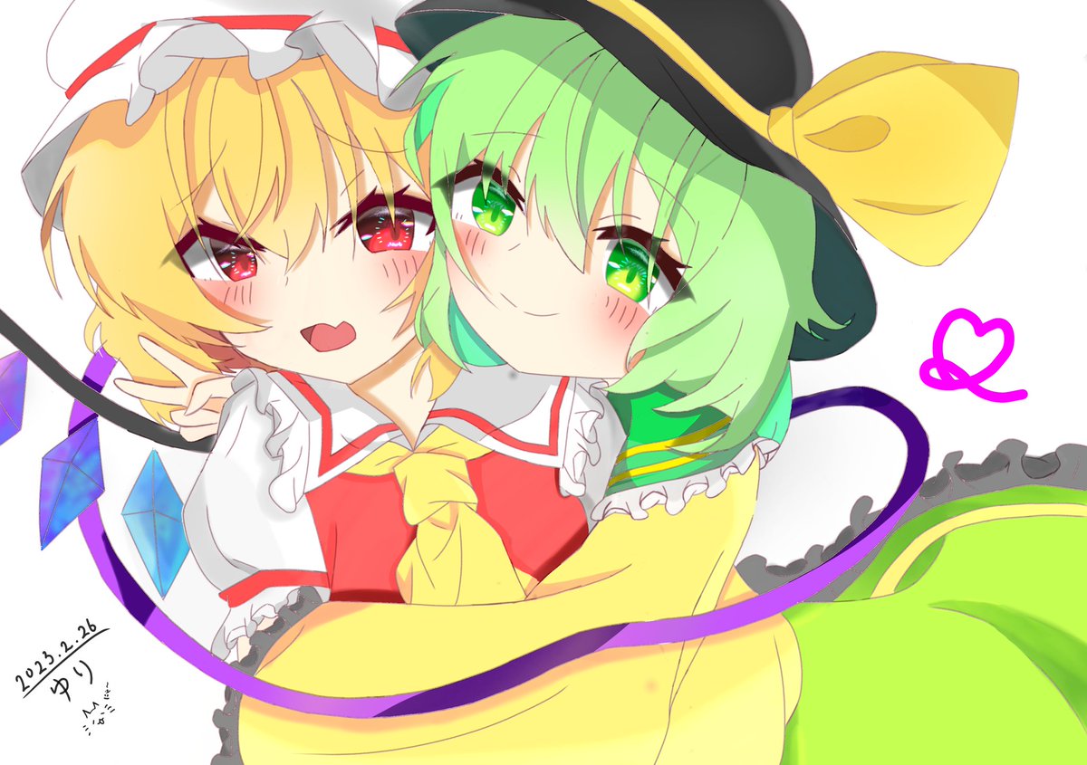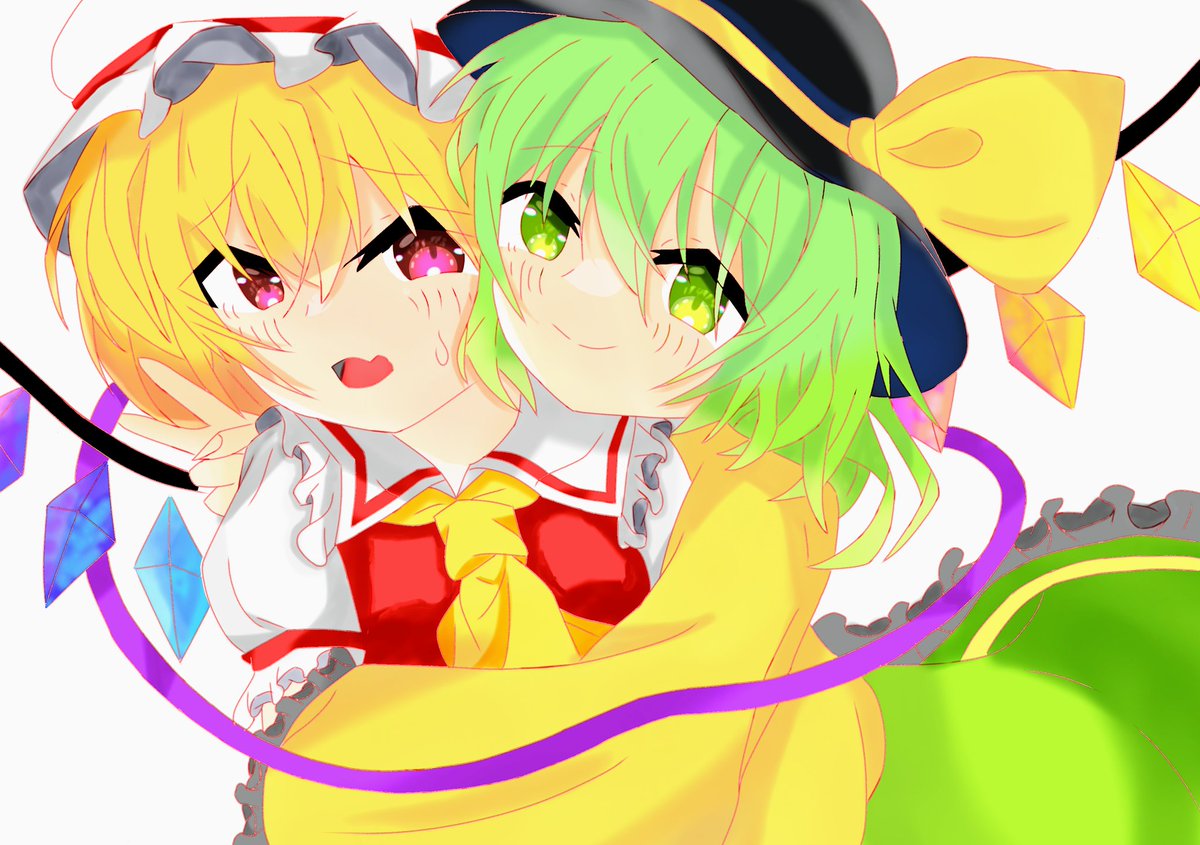 「はい、ピー (* '-´(( '-' * )ムギュ♡ ス」 #フランドール・スカーレット #古明地こいし #東方Project #イラスト (再投稿 )フラこい愛してまだ10年だけど、この愛は誰にも負けてないつもり。v(。・ω・。)ィェィ♪
