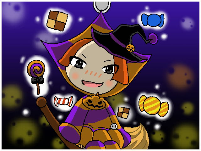 9 24 #電波人間版深夜のお絵描き60分一本勝負 お題「ハロウィン」「マジョカ」「キャンディ」 イタズラ顔のマジョカ( ˙꒳˙ ) 20/10/25 22:10