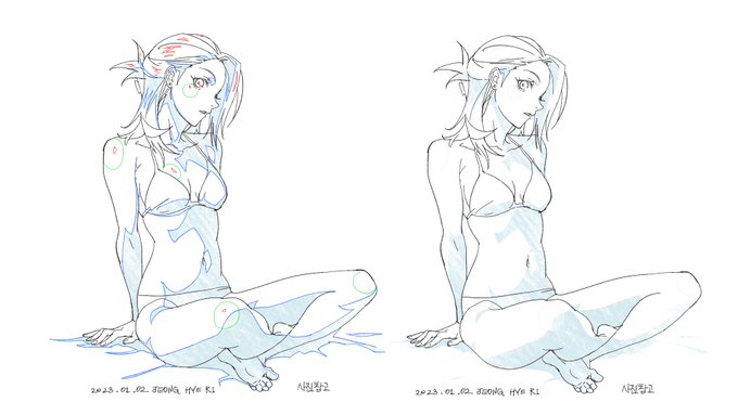 227 585 보통 채색은 모두 가색으로 마스킹을 마친뒤 1 상위에 레이어 1개 생성 2 동일 색 일괄 선택 요술봉으로 각 밑색 선택 3 원 레이어 묘사 순으로 하고있습니다 밑색 따로 빼 확인을 할수있는것도 그러한 이유로써..채색 레이어가 3개 이상 넘어가면 스트레스가 너무 심해져서 개발한 워크플로우입니다 22/12/03 16:49