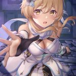 『次の旅の始まり』 原神から 蛍ちゃん(デフォルト名) パイモンちゃん(非常食)を描きました! #原神 #GenshinImpact