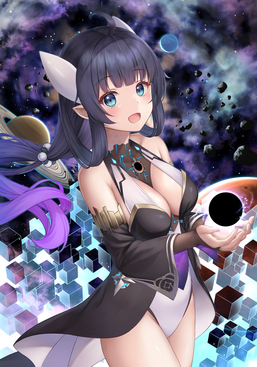 『黒い海の始まり』 雫が分裂した存在シイク クシィ イクシー シイクは黒の泡を操り海を創造し広げていった #オリジナルイラスト