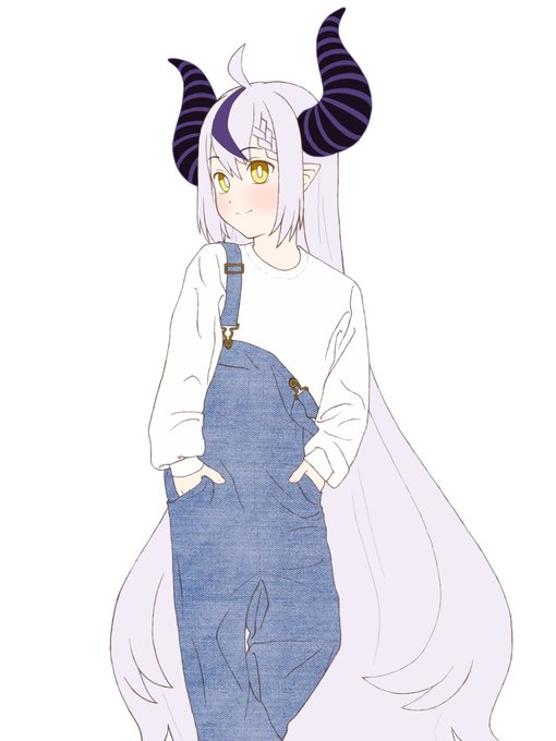 オーバーオールなラプ様。 ラプ様をもっと描きたいけど、角がむずかしぃ。 3Dモデルでも用意しないと上手く描けないよ。 最近自分の描いた絵が可愛く思えてきた! 成長したな。 #Laplus_Artdesu