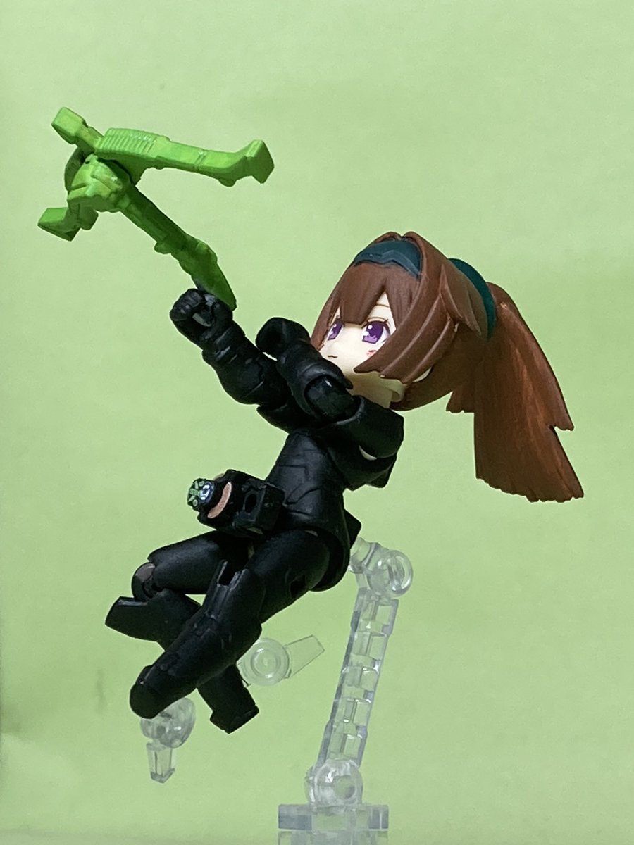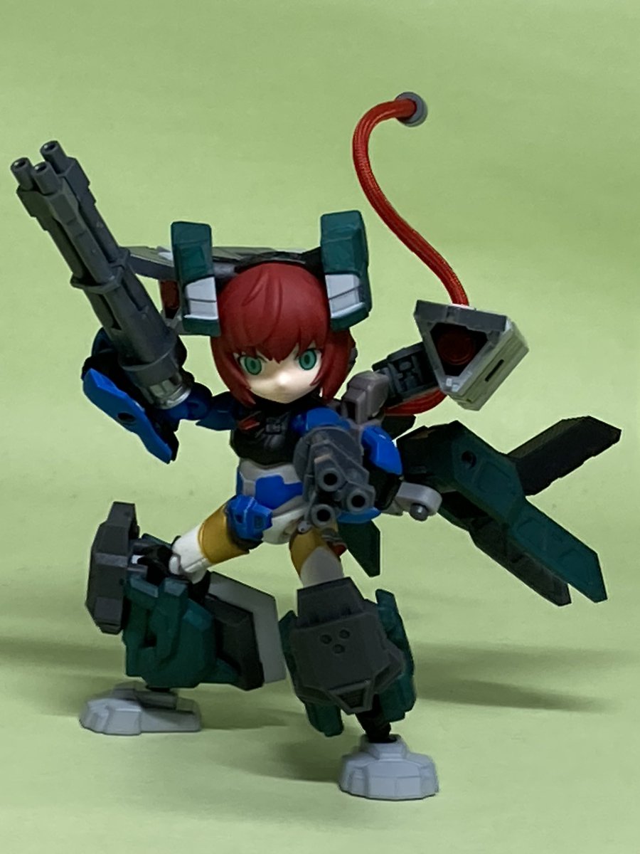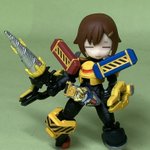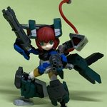 #デスクトップアーミー *ケイオス:コマンダー 収集、剥奪した情報と記録を使用して製作した射撃戦闘特化形態。 腰部の放熱フィンによるガトリング連射の延長、超重量の機動性低下の対策としてホバー走行を採用。