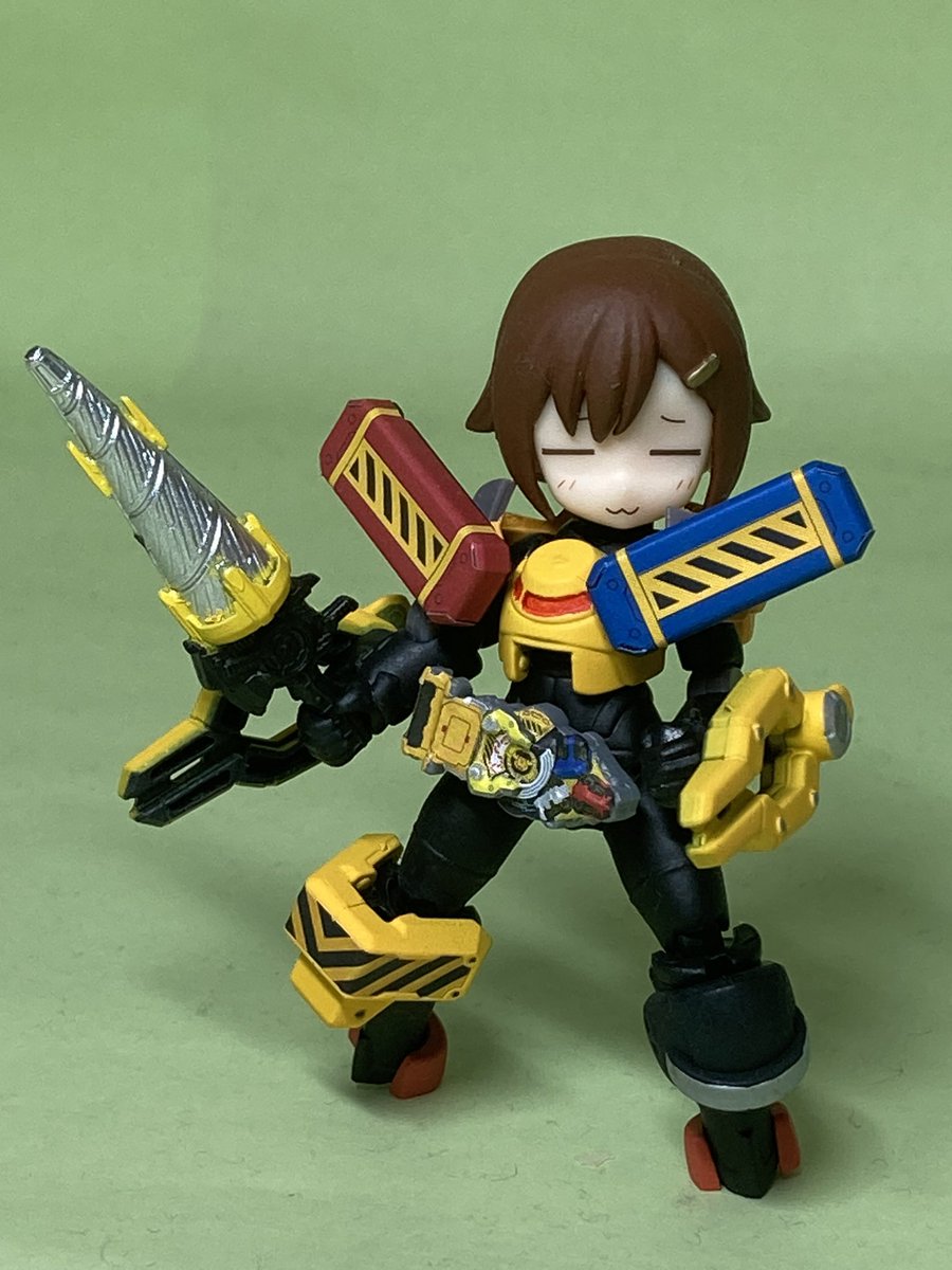 #デスクトップアーミー #仮面ライダーギーツ [パワーローダーアーマースーツ] レア物の[ウェポンメモリー]の一つを使用した装甲服。防御力が最も高く、相手の攻撃を耐えながら付属のクローで攻撃するのがこの形態の基本戦法。