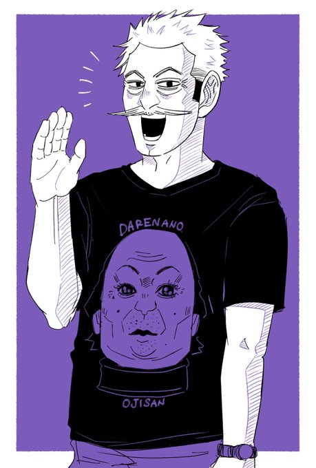 #ゴールデンカムイ版深夜の真剣お絵描き60分一本勝負 【お題】※現パロ 有坂成蔵(中将・閣下) 誰なのおじさん 「やぁ!!!鶴見くんどうかね!?!?この新しいTシャツー!!!ん!?こいつが誰なのか???全く分からんよっ!!!!!」