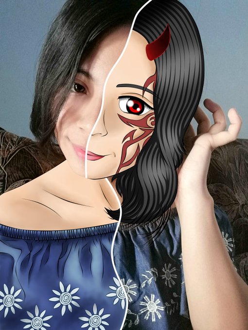 a little late but I finally did my #toonmechallenge (a última hora se me ocurrió hacerme la marca de Yuu demonio en mi rostro xD y el cuernito uwu) #toonme