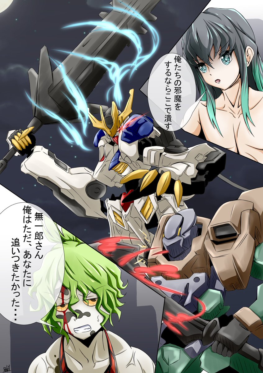 2 3 無一郎のバルバトス #鬼滅の刃イラスト #鬼滅の刃ファンアート #機動戦士ガンダム鉄血のオルフェンズ 23/06/13 11:44