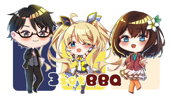 3setBBQ udah lengkap.. A___A (ㅇㅅㅇ) / >🥩🔶☕ #3setBBQ #hanamaki_art #Taka_Radjimart #ZEA_art #イラスト #ファンアート