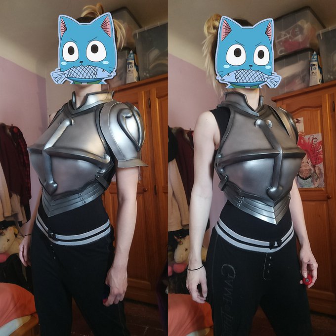 Vous préférez quoi : - Mon nouveau plastron ? Ou - Ma nouvelle tête ? #erza #erzascarlet #erzacosplay #erzascarletcosplay #FairyTail #cosplay