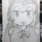 #ジョフのお絵かきちょう かつて描いたジョフちゃんの線画に色を塗り塗り(まさかの色鉛筆を忘れたので何故かもってきてた蛍光ペンと虹鉛筆で工夫してみた)