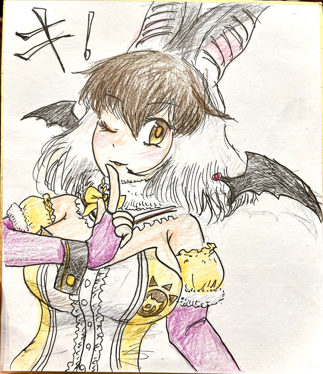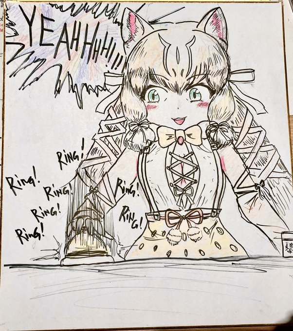 18 59 #ジョフのお絵かきちょう かつて描いたジョフちゃんの線画に色を塗り塗り(まさかの色鉛筆を忘れたので何故かもってきてた蛍光ペンと虹鉛筆で工夫してみた) 23/04/16 00:01