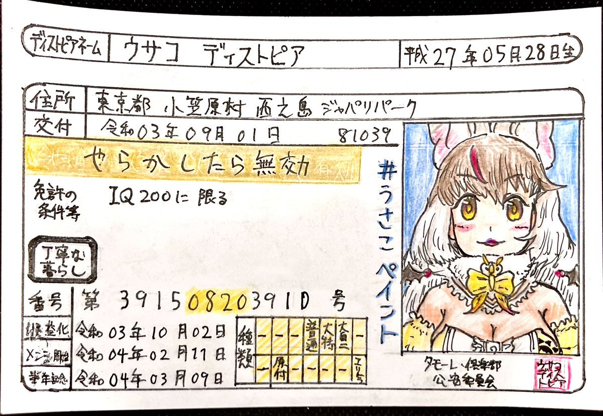 #うさこペイント ウサコの運転免許証風ファンアートを想像して描くなどした 色々と要素を散りばめるのは楽しいてワケ!