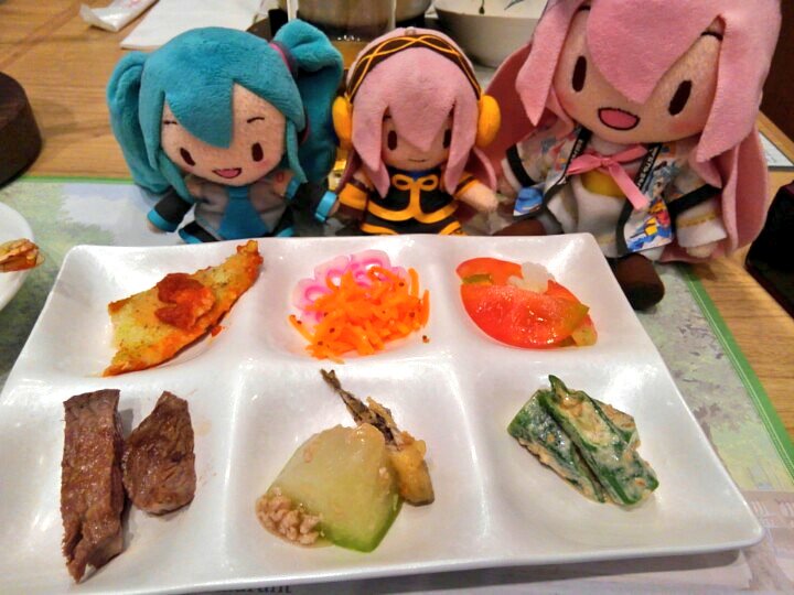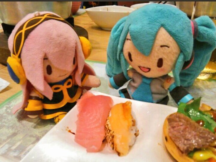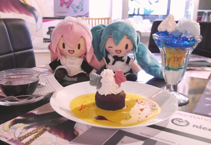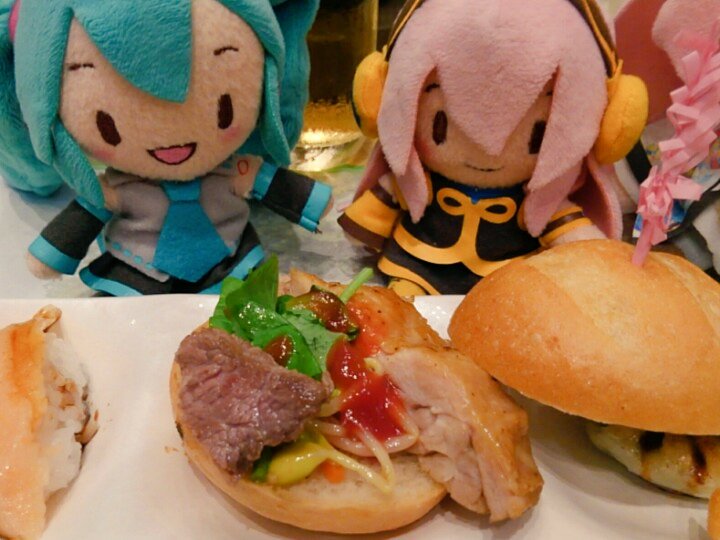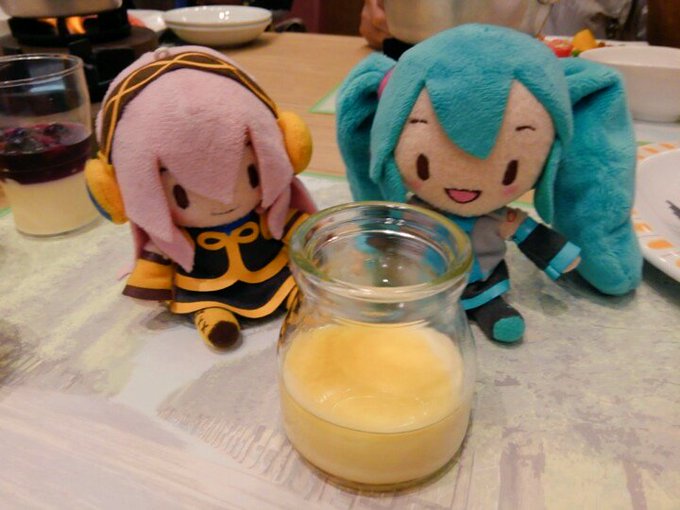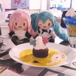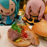 10thルカさんカフェで① 中ふわルカさんたちとたこルカちゃんと10thミクちゃん このルカさん10th Anniversaryプレートおいしかったです。(^o^)p #ぬいぐるみ撮影60分一本勝負