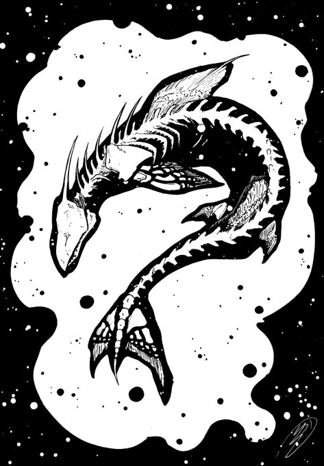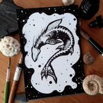 Inktober 28 : "Beast" + "Sea" 🦈🌊 Apparemment, les requins anciens (il y a très très longtemps, donc) avaient un aiguillon derrière la tête. Des sortes de licornes des mers, quoi 🦄 J'ai interprété ça à ma façon ! #inktober2021 #inktober #savotober #sharks #beast #sea #fossil