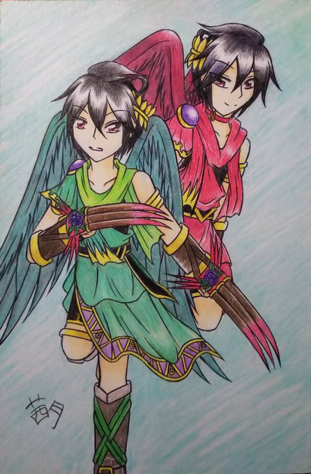 #みなさん去年の今頃はどんな絵描いてましたか 去年の7月は暑さで昇天してた影響もあってシエル君とビビ君(緑ピットと黒カービィ)の絵しか描いてない(確か元々あった線画を塗っただけ)ので6月分も入れて、 ヘッダー絵もそろそろ別のものに変えるかなぁ🖌️