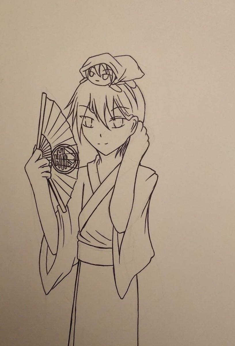 #9月5日は刀帳95番の山姥切国広の日 結局遅刻した(´・ω・`) でもまだ朝になってないからセーフ(?) 普通出陣服だろって言われそうだけど浴衣姿をあんまり描いてなかった事もあって描きたかったんだ…🖌️ 他にも背景無しと線画も添えて🖼️