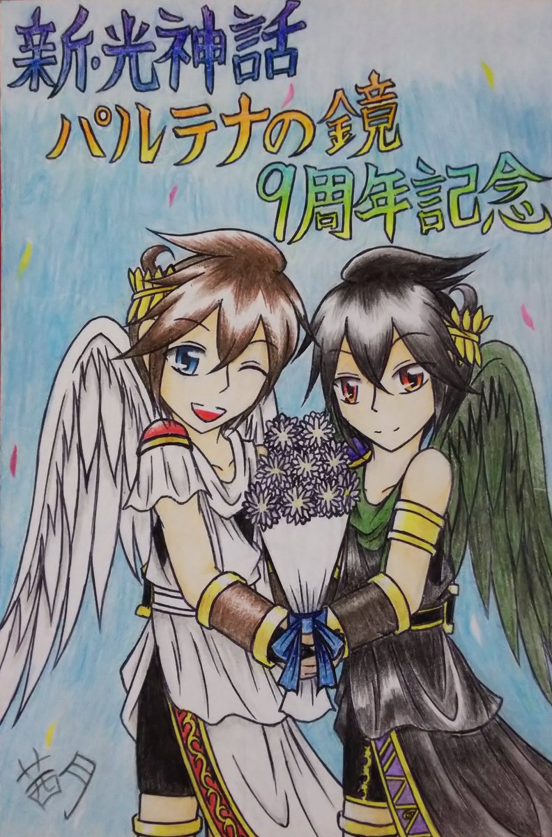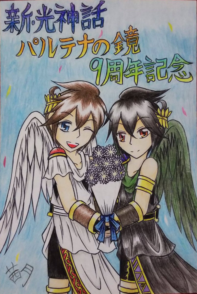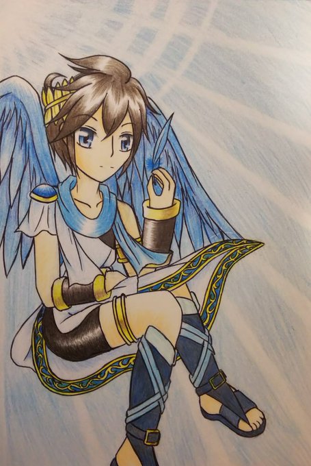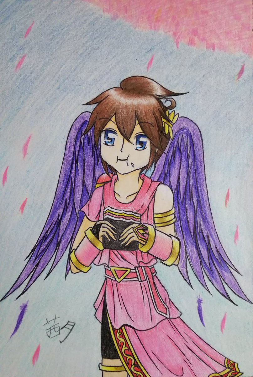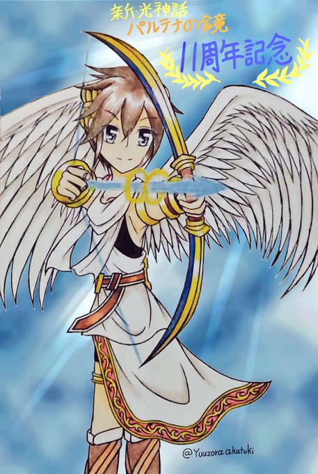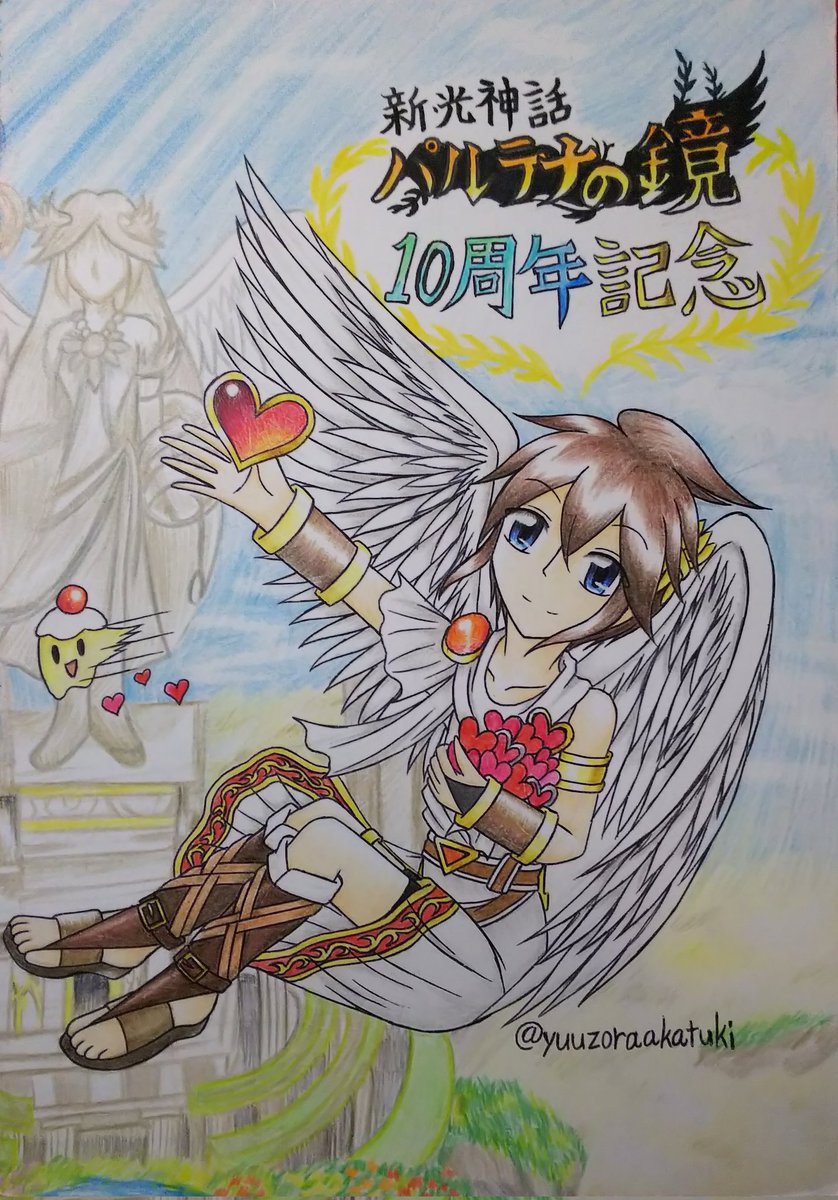#新パル10周年 #新・光神話パルテナの鏡10周年 新パル十周年おめでとう🎉 今回は感謝の気持ちを込めてエンジェランドを背景にハートを捧げるピット君を描きました🖌️ それにしてももう十周年か… 時の流れは本当に早いわぁ…