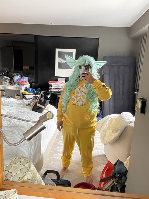 It is gamer feesh time featuring @PastelMelonPM egg hoodie yeah yeah 🐟 #FinanaRyugu #Finanart #NIJISANJI_EN #cosplay #LazuLight #AnimeExpo2022 #animeexpo