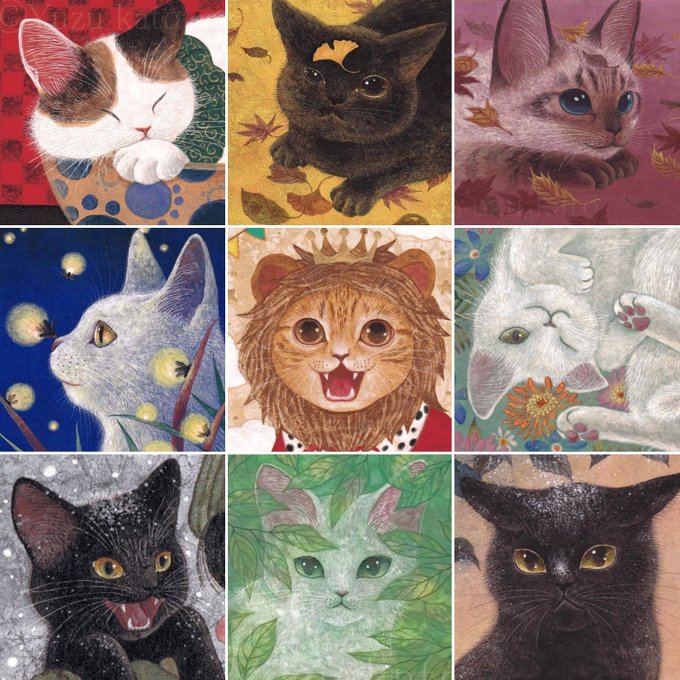 #ゴールデンウィークSNS展覧会2023 日本画材やアクリル絵具でいろんなネコを描いてます。(画像の4枚は全て日本画材で描いております。)和風の作品の割合が多いかもしれないです。この機会に楽しんで頂けたら嬉しいです。